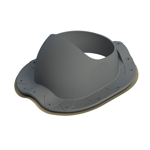 Предназначен для монтажа на скатных кровлях из металлочерепицы «Монтеррей» с высотой профиля 25 мм и минимальной длиной профиля 350 мм и установки на него аэраторов и вентиляционных выходов диаметром 110-160 мм. Герметичность монтажа обеспечивается бутилкаучуковым уплотнителем на внутренней стороне фланца.